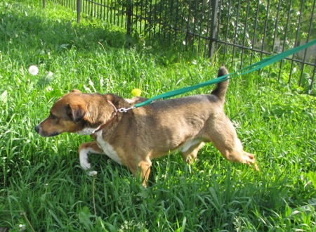 Nazwaliśmy go Labek. Ma złamaną jedną z tylnych łapek...