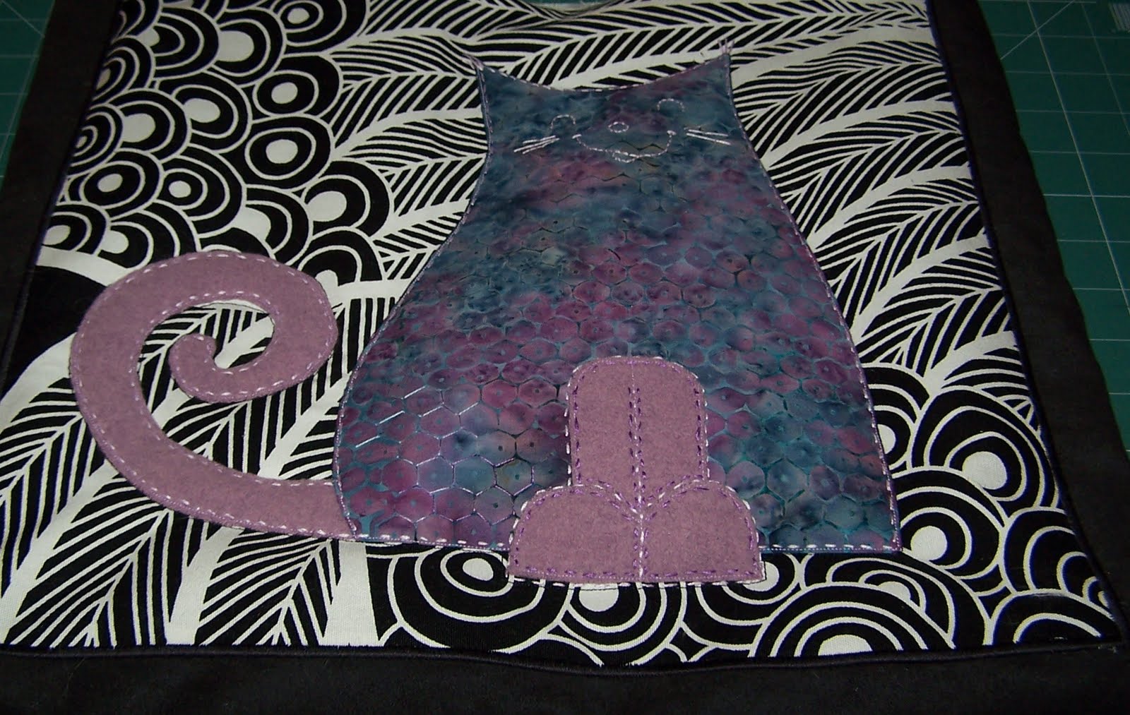 Kolorystyka z przewagą brązu, może być na gładkim jakaś aplikacja z wyciętego kota. Dowolnie.