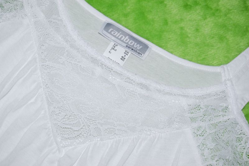 14. tunika/bluzka marki, rainbow, nowa, bluzeczka wsuwana bez zapięcia; efektowne wykończenie dekoltu; śnieżno biała koronka; odkryte ramiona; materiał bardzo przyjemny w dotyku; miękki; wiskoza+poliester,