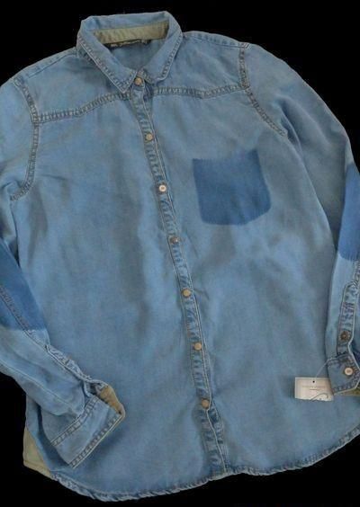 5. modna jeansowa koszula marki ***ZARA TRF*** , zapinana z przodu - napy, guziki; dół zaokrąglony;
