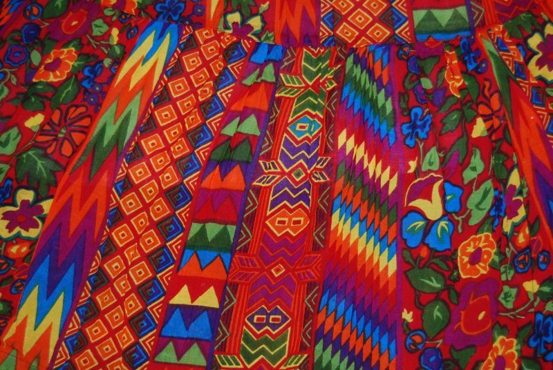 szyta z trzech falban; używana, stan bardzo dobry-; od spodu bandażowa podszewka; niesamowite azteckie wzory