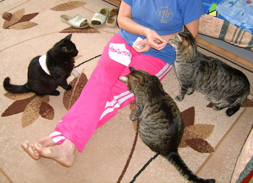 a jeśli nie będzie mogła tam zamieszkać, to.... mama ją chyba zostawi... druty ma mieć wyjęte sierpień- wrzesień, parę tygodni później mogłaby wrócić, ale po tylu miesiącach w domu może się zrobić zbyt ufna, itp, a mama zbyt się przyzwyczai do czarnej jędzy (zwłaszcza, że ta przyjaciółka bardzo nie chciałaby jej szukać domu - dla niej to jest JEJ KOT...) więc liczę, że jednak za ok tydzień zamieszka u siebie ;-)