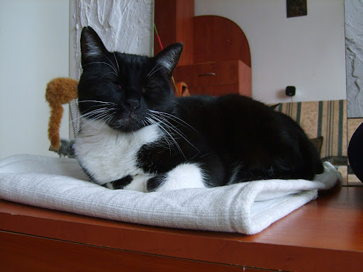 i jeszcze Beeju w "pozycji klasycznej" (on na prawdę tak siedzi / śpi, choć zwykle śpi bardziej na leżąco :roll:)